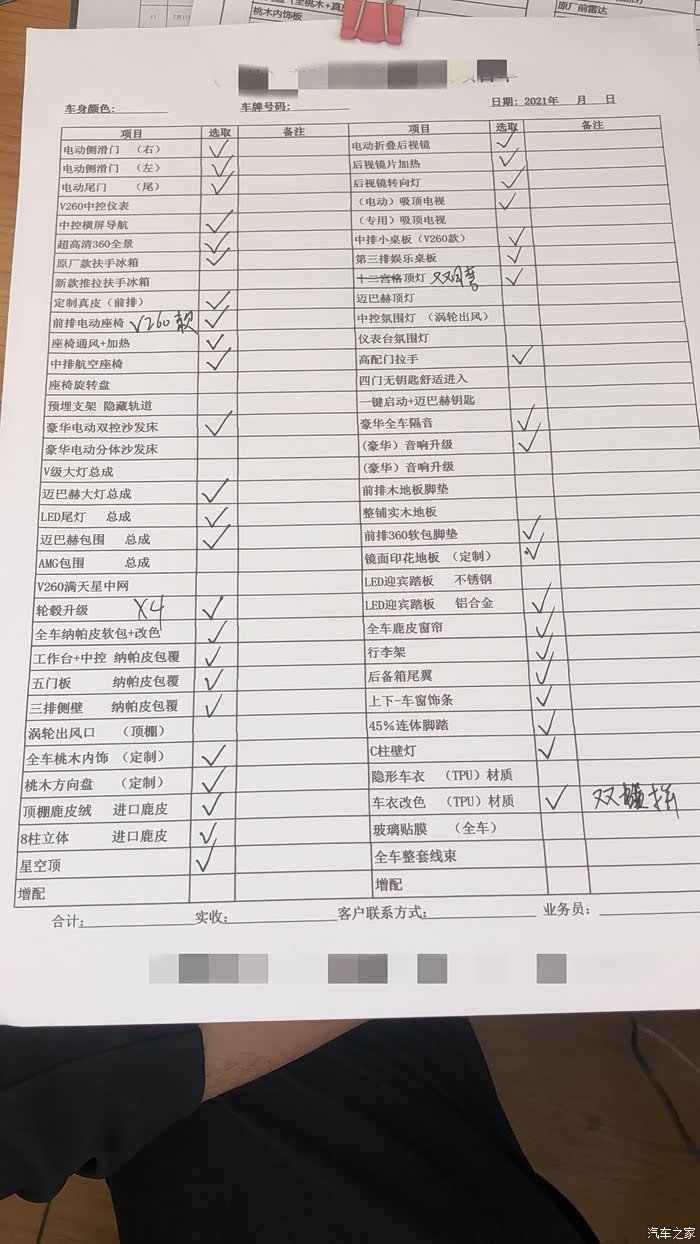 外观上没怎么纠结,就选了时下最流行的就是了,不过我看过几个改装模板,实在感觉迈巴赫包围颜值气质第一没的说,流行也是理所当然的了,况且迈巴赫风本来就是奔驰的旗舰,也不算山寨吧,好看才是王道,加上迈巴赫大灯总成,轮毂升级,双拼色的车衣,单说外观颜值方面,拿阿尔法我是绝对不换的。内饰配色上改的模板太多,改装的空间也比较大,单说配色几十种绝对有,为了和迈巴赫外观气质相搭配,我最后敲定了最经典的米咖配色,毕竟平时商务上用的比较多,选择经典典雅的米咖不会那么尴尬,如果是个人家用,我绝对会选择大红大绿的颜色玩玩,商务用就不一样了。内饰全车基本上用了纳帕皮质包覆+桃木,从上到下,摸得着看得见的地方,我都用心去琢磨了,现在我可以说,实车看完之后对得起我的付出吧。清单附上了照片,大家自己对照看吧,就不一一列举了。