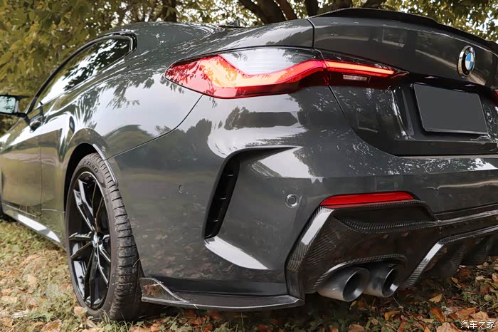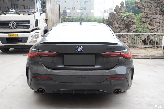 尾翼粘贴了一个跟G82 M4原车同款的压尾翼,中间一个小凹槽设计。