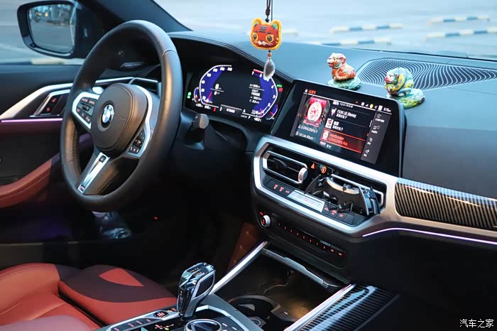 看完了外观,我们来看下内饰部分,刚好到的是台红内,也能接受,哈曼卡顿的音响,方向盘加热,加的配置也相当实用,区别于上一代F底盘的仪表,液晶的虽然更具科技感,但是也缺乏一种指针加速的冲击力。