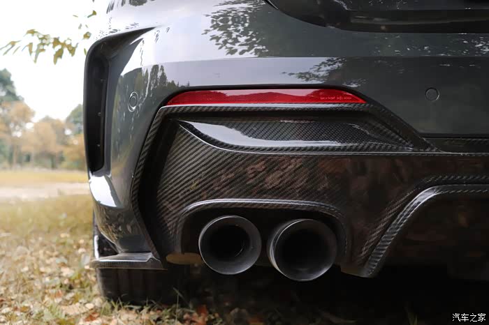 不能说它颜值足够完美,尾部就一小差评,为什么是小差评?因为这都不是什么大事,虽说比F底盘的多了一个双边的排气,但是小啊,后唇太单调,尾喉过于小气,兄弟3系好歹也配了个方口。不行,看不下去,改它。