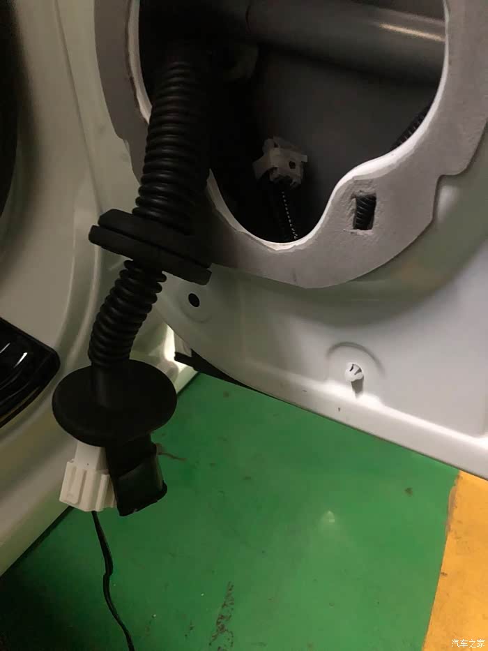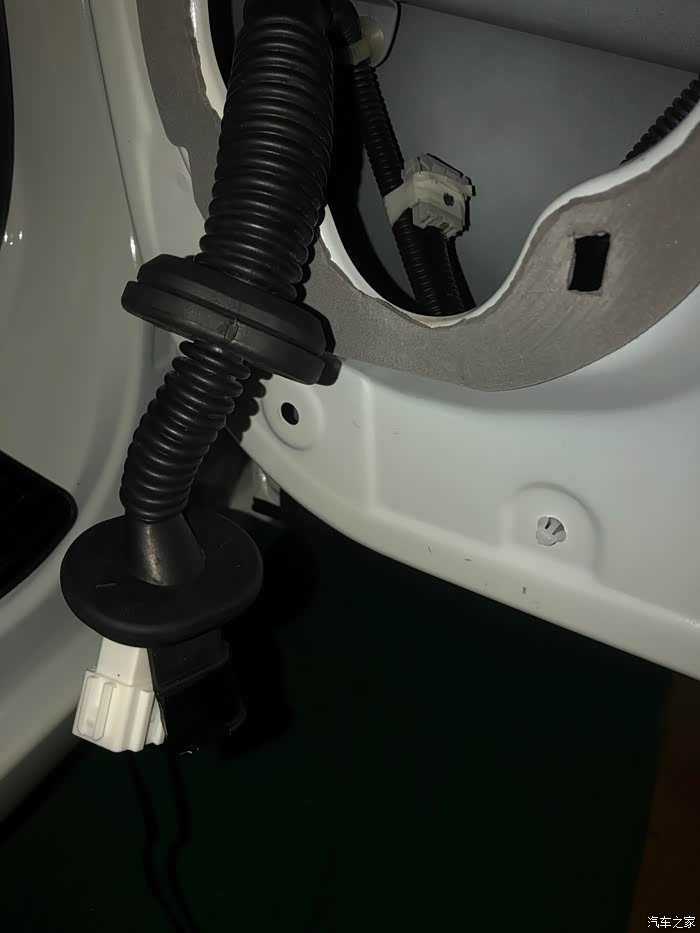 然后再把橡胶管和插头恢复原状,这个时候线已经在管子里,引到安全带这边的门柱内侧