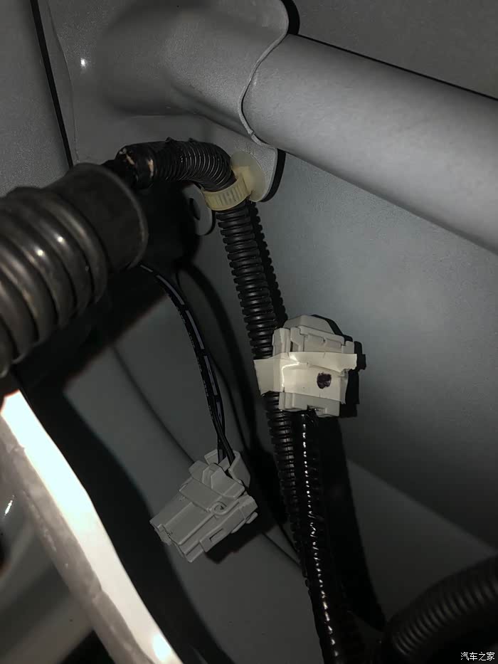 插头对插之后,用扎带固定下,避免晃动有异响,原车的也有一个插头,固定在下方。