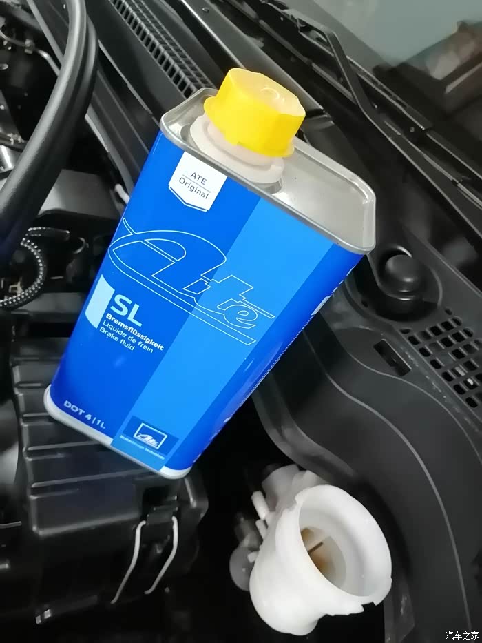 再更换4条刹车钢喉防止橡胶油管彭涨又泻去点力量,整个改造踏板行程已经缩短,刹车感觉灵敏了,尽量缩短紧急刹车距离,再把本田出名垃圾的原厂刹车油更换掉(非常容易变黑),更换为ATE SL刹车油,这SL也不是什么顶级货,日常用就很足够了,最小不容易变黑变质