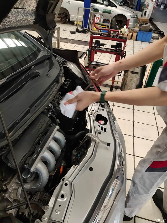 最后师傅把发动机舱擦拭了一下,再用风枪吹,再给大家看看清洁后的机舱……
