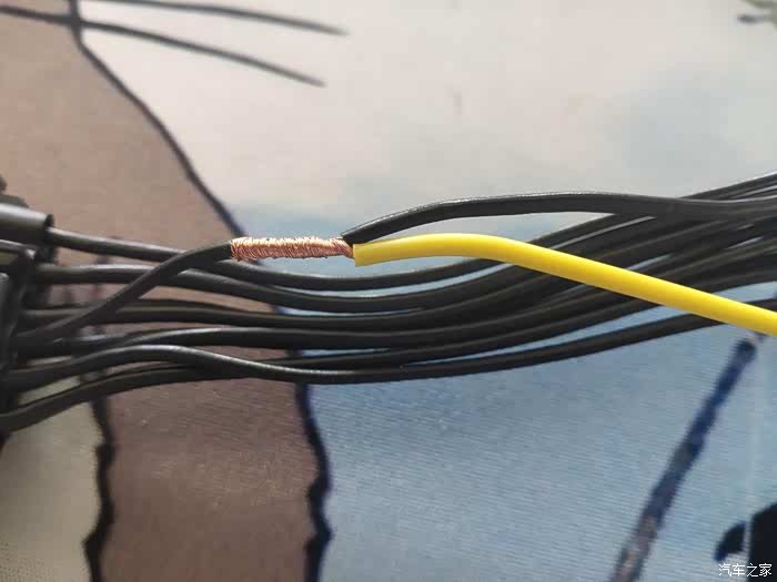 找到后,对换以后上车测试没问题,车子启动,那就用万用表找转向灯及近光灯线路,原理就是,车内打开对应的灯光,线路有电,反之没有。找到后用买到的灯试了一下OK。对第一次买的线束破线、接线、焊接、绝缘、缠绕耐热胶带。