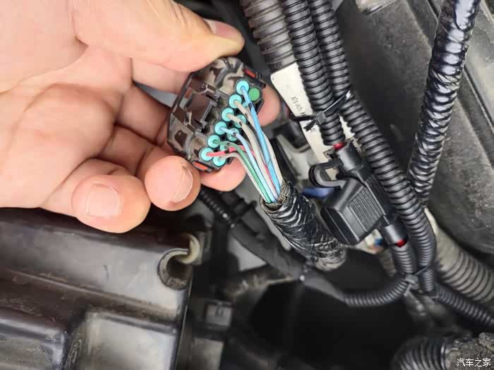 开干,把买的灯线改装,全部按照以前的分组,进行耐热管包围。这个工作我干了1个小时,中途不停的比划长短。就是灯的控制盒固定位置,然后看看所有线的位置,怕被包围短了麻烦,长了好办。 然后就是需要破线。我从心里还是不喜欢破线的,刚刚好第一次改装是买的线束还在,可以利用。原理,新买的灯,需要红色线接电瓶正极,黑色搭铁,棕色ACC,黄色转向,蓝色近光灯。依旧需要控制线,转向流光需要转弯灯处借电,实现白色灯光需要ACC,蓝光需要近光灯打开就可以。这些,除了ACC 都可以在大灯总成插头那里搞定,那就开整。第一次改装时那个线束在,但是呢那个线束不能直接使用,因为直接使用示宽灯不亮,还好仔细查看了原车大灯处总成插头,有一根线没有,但是我买的插头有,那就换一下。