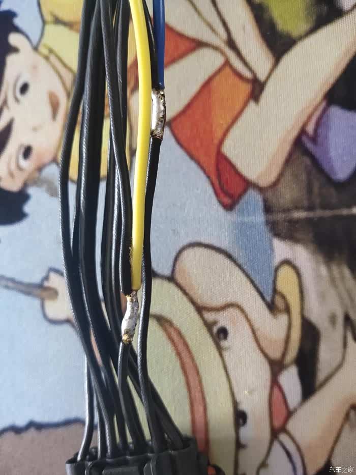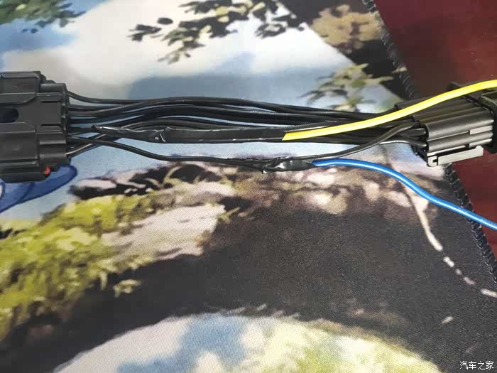 线束厂家用的胶皮,被我全部拆了,看着一团乱麻,然后上的耐热管,就这玩意我弄了1个小时。背景是我的鼠标垫。