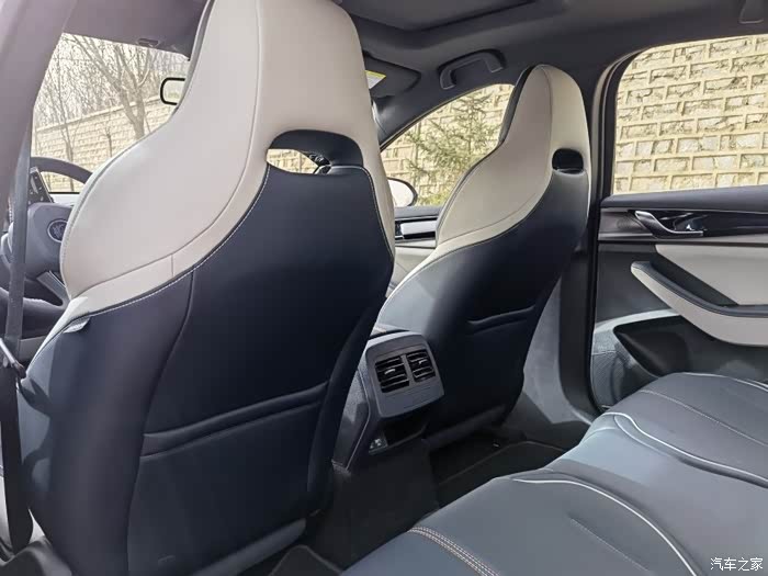 侧面是标准的溜背式C柱,所以对后排空间还是有一定的影响,我个人的身高是1米7,体重是140斤,我坐后排肯定是没有问题的,但是身高一旦达到1米85左右的话,后排的头部空间就是相当紧凑的。