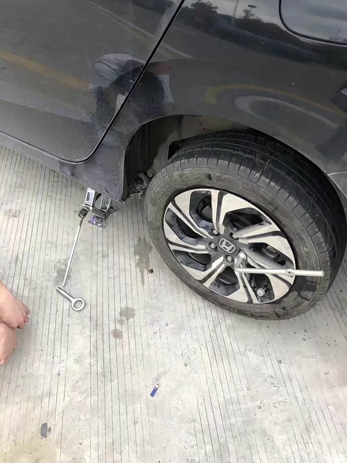忍忍痛,决定就在服务区补胎