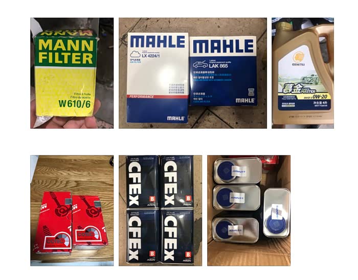 具体配件品牌:机油出光0-20w,610/6曼牌机滤,4224/1马勒空气滤芯,LAK865马勒空调滤芯,爱信cfexb变速箱油1L*4,刹车片天合7901/7915dt,原厂送的一副雨刮。