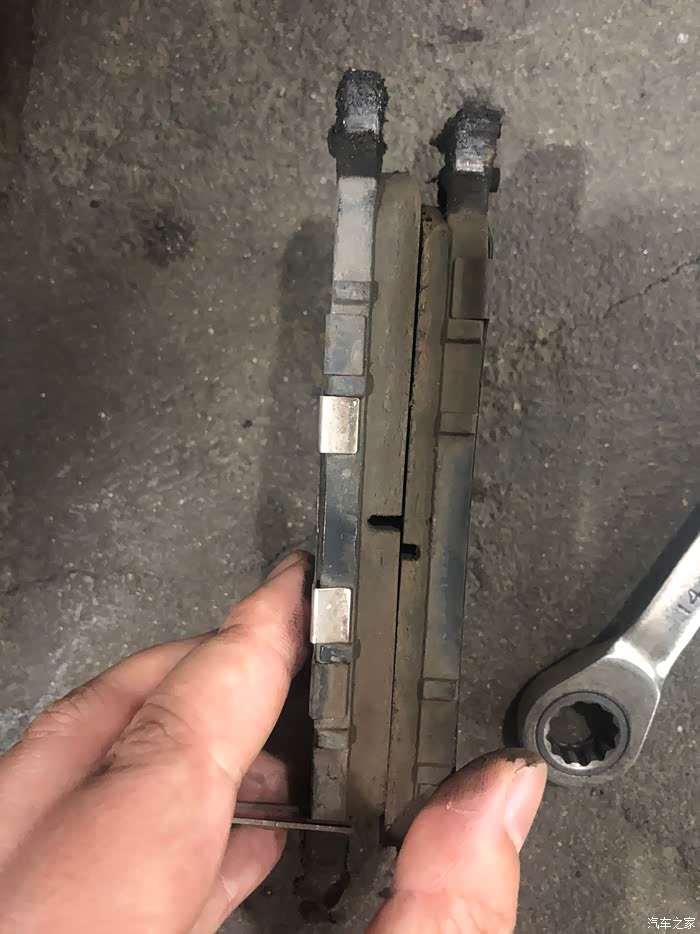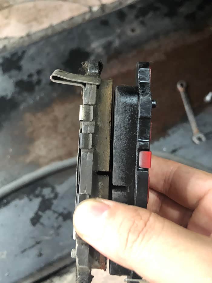 后面刹车片还挺厚的,师傅说可以不用换,但是11万公里没有换过刹车片的我还是决定一起更换