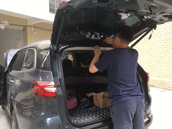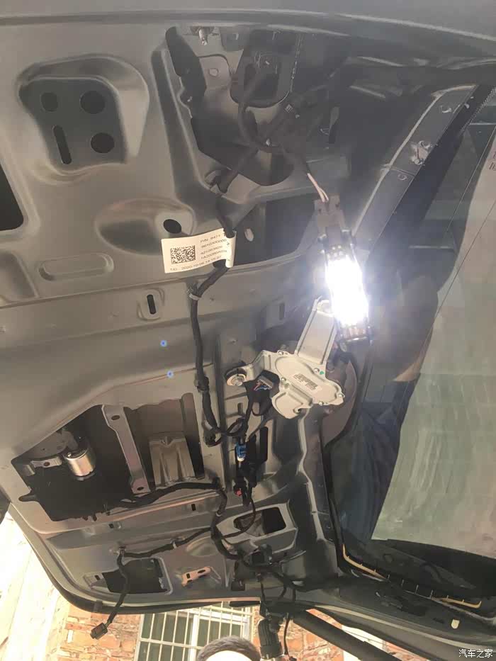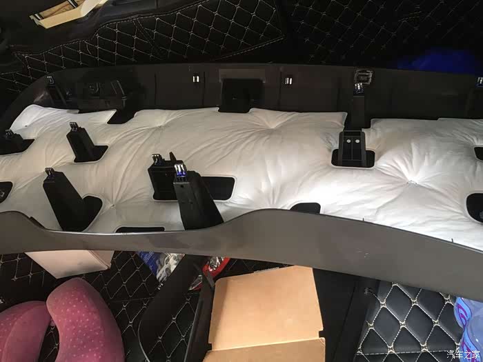 所有需要做隔音处理的地方,都有一层厚厚的白色包棉,看上去很干净舒服,摸上去手感也还不错,同时我也看了一下尾箱上的布线,所有裸露较长的线都有卡扣固定,多条线的地方也基本都有黑色的棉带缠绕,减少了产生异响的隐患,此处给昂科旗点个赞。