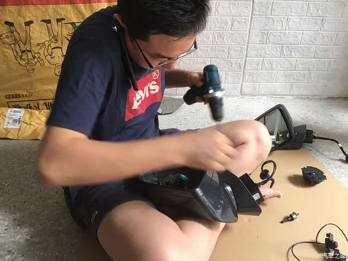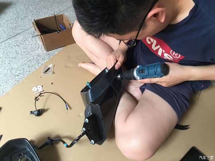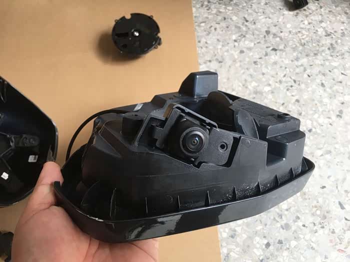 前后摄像头装好后就剩下后视镜安装镜头了,还是那句话,师傅太快了,我就去了趟洗手间,师傅就已经把后视镜全部拆开,正在打孔,所以就只能简单拍几张照片了,后视镜的镜头装好后,我拿在手里掂量了一下,有点份量,整体的做工都不错,看了一下打孔的地方,塑料外壳的厚度也还可以,有足够的刚度。至此,前期的工作基本上都完成。