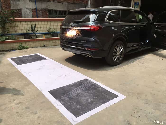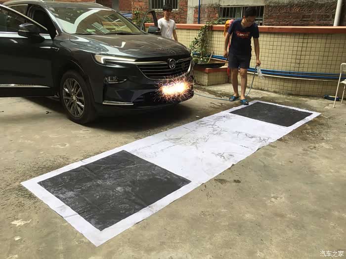 最后就剩下安装调试,两位安装师傅左右开弓,并在车的前后端铺上了定位用的白布。