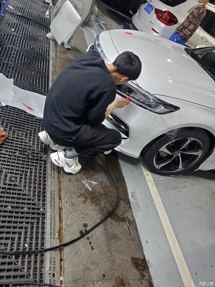 回来以后重新贴了个大灯保护膜。认真的师傅