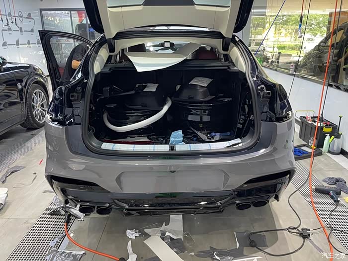 排气暂时就先不改了,预算有限也不喜欢声音太大,割掉原车换成四出,朋友叫这是静音版四出排气