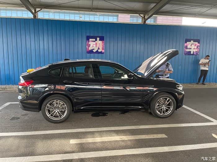 拍照技术有限,换了x4m包围升级了20寸亮黑轮毂,实车这个角度蛮帅的