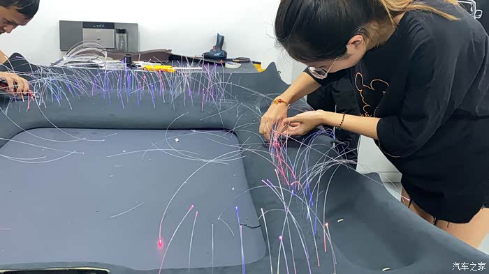 第一张照片,大家应该有看到上方的星空顶,尤其是在晚上的时候,“星星”显得格外耀眼。很荣幸来到改装场,并亲手参与制作我的星空顶。改装星空顶,需要拆掉原厂的内顶棚,将光纤粘贴上,并在后排头顶位置,安装一个控制盒。可以进行遥控处理。随后再包上一层翻毛皮。就完成啦下面成果展示!