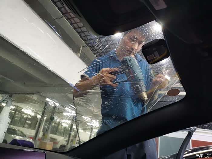 只看见师傅一直擦啊弄啊,贴啊,刮啊,反反复复的动作,但是让我没想到的是很快就弄好了。