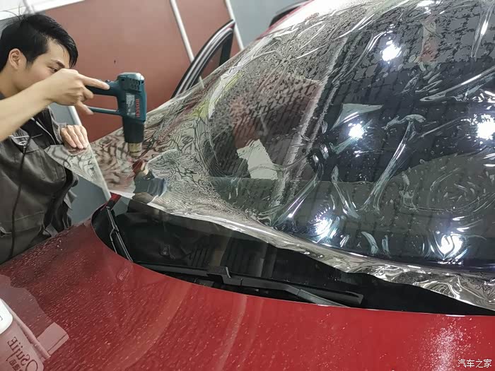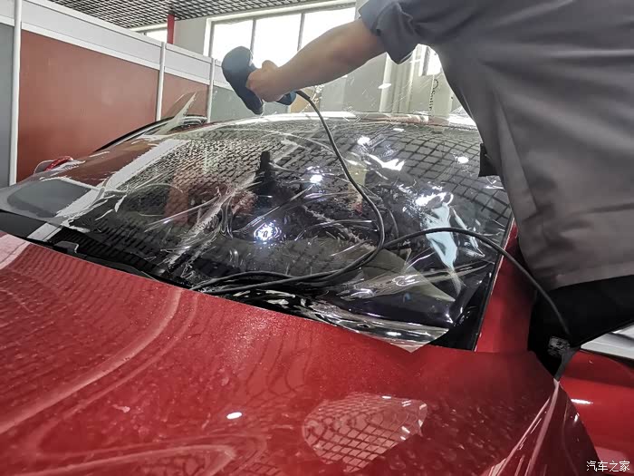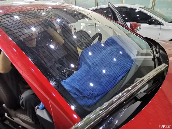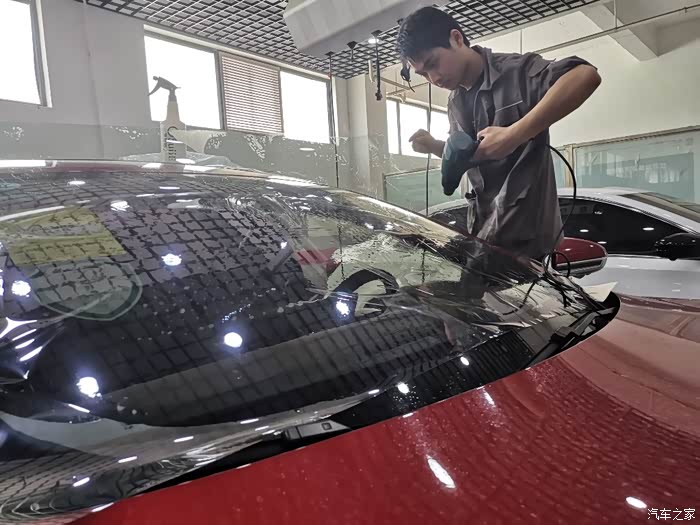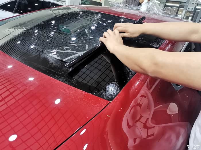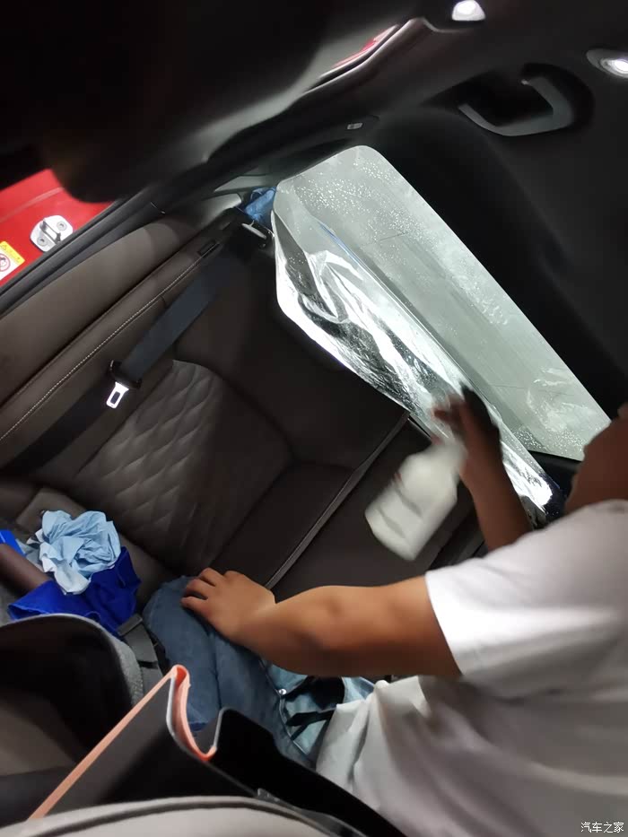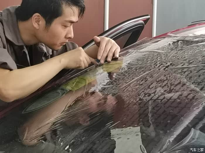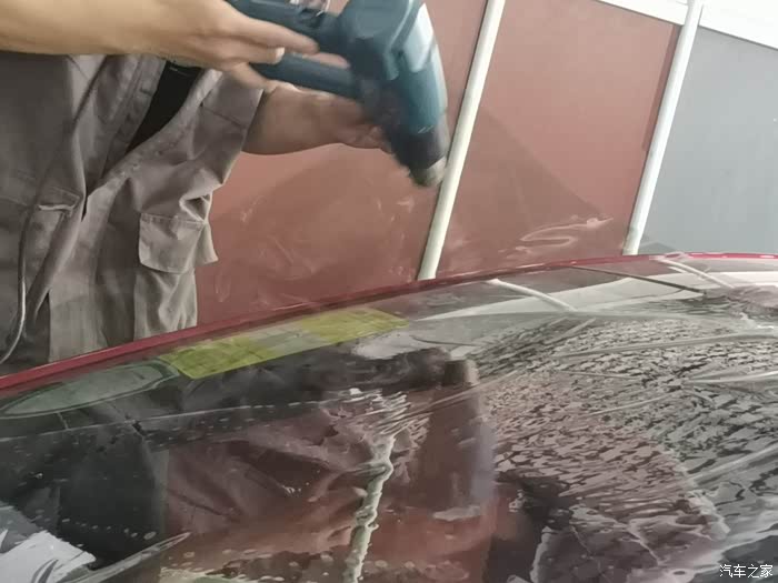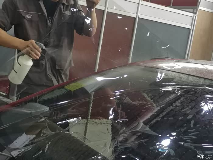 挂水,喷水刮水,反反复复的重复了好多次,前挡风玻璃的膜就贴好了。
