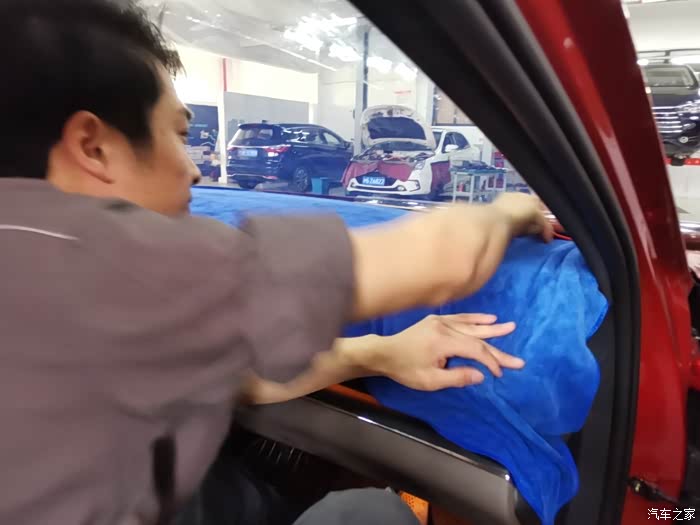 全部都弄好之后,师傅再到车子里面喷水