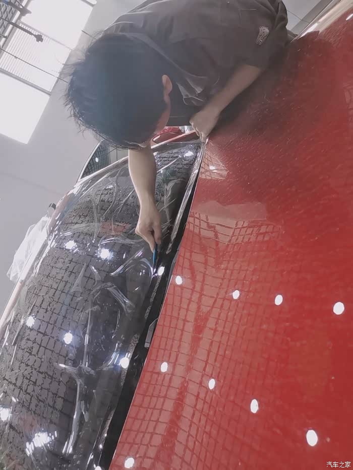 这个师傅用划刀都直接划都不需要量或者干嘛的,贴膜也真是一门技术活。