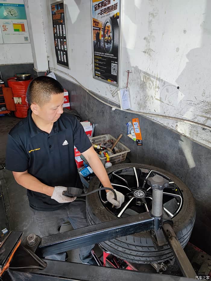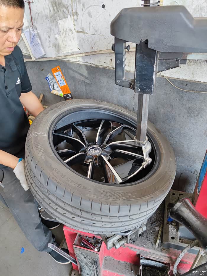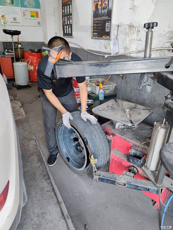 上扒胎机,要小心,不能把胎压监测模块碰到了