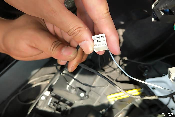 原来加装的工具箱灯的插头,自行把线移到并线辅助的插头上