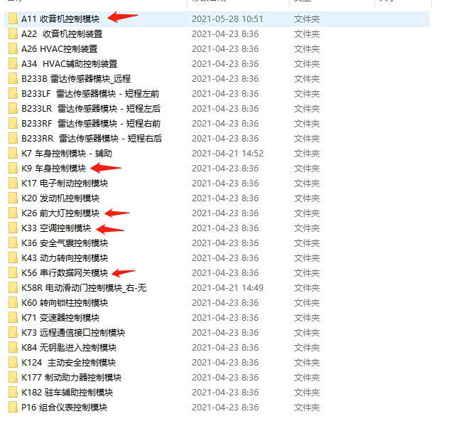 氛围灯的部分告一段落,接下来是艾维亚的矩阵大灯,需要的材料是原厂艾维亚大灯,自动大灯拨杆开关、仪表台线束(这个我目前不能确定是否一定需要,大灯线束对我的车来说是一样的,所以我没有更换。估计有带光感和自动刹车功能版本的车都可以不用换)。大灯和拨杆开关很好安装,很快就安装好,接下来我的车通过车易升的技术人员友情帮忙,刷了大灯控制模块、空调模块(电路图里面标明大灯受空调模块控制)还有网关模块。下图是我一共刷过的模块。