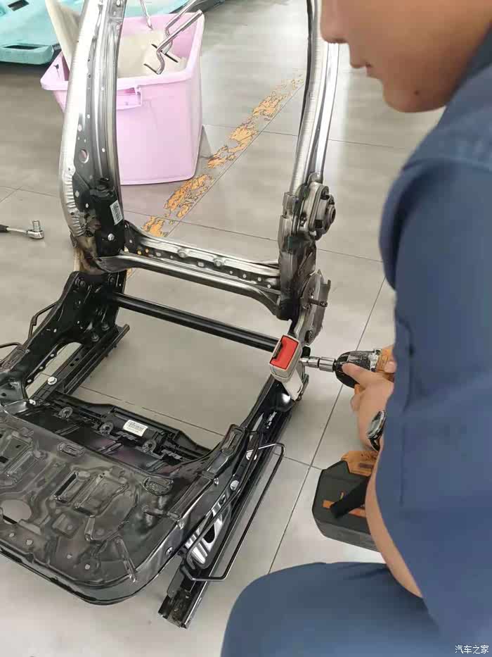 改装师傅在拆散座椅,准备升级电动调节功能!
