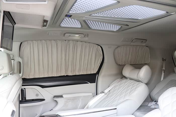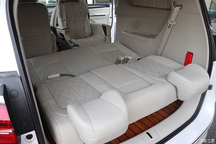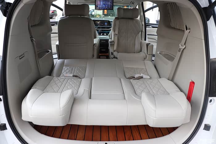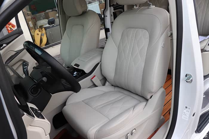 改装清单:1.恒新MATE款航空座椅2.第三排沙发床3.主副驾真皮包覆4.原厂前雷达+并线辅助5.嵌入式冰箱扶手箱6.主副驾驶电动座椅7.主驾驶腰托8.主副驾原厂通风加热9.桃木真皮方向盘10.海康威视360全景11.电动左门锐一12.电尾门天鉴13.游艇木地板+无轨道处理