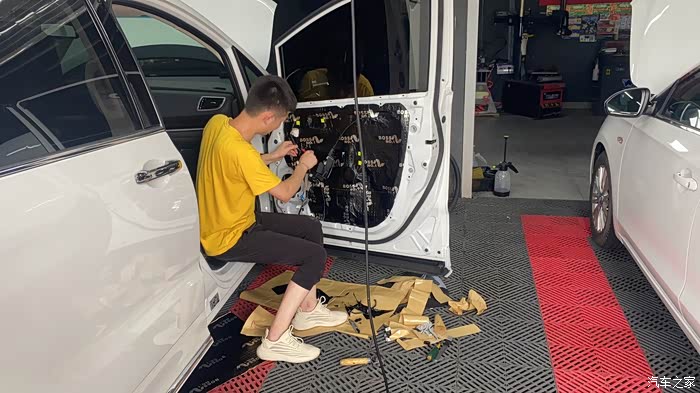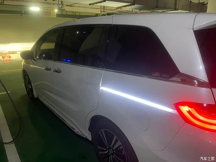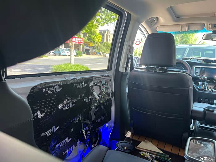 先罗列下加装的一些价格让大伙参考参考。1.车衣13800带车顶车内,质保10年。2.龙膜4999,质保5年。3.全车木地板+不锈钢前排中排带灯踏板5000。4.全车10劲浪音响加低音炮还有功方8800。5.电尾门2500。6.全车氛围灯2500。7.360全包脚垫1000。8.流媒体800。9.方向盘套400。10.大灯400一对。11.流水灯300。12.全车桃木装饰400。13.一对座椅通风400。好了废话一大堆终于开始上图,让看官们久等了