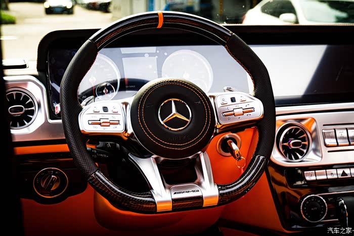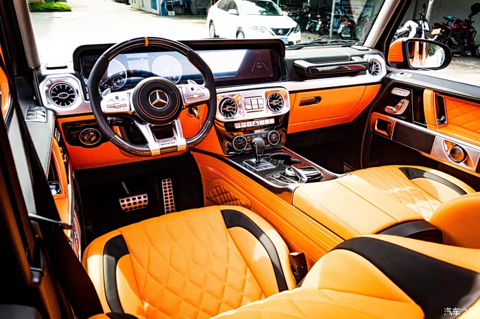 如果您有一台老款奔驰G会选择像我这样升级吗!下面给您带来一台18年奔驰G350的升级之路。外观:升级了新款的AMG包围(更换部件:前后保险杠,四只轮眉,引擎盖,新款大灯,新款后视镜总成,转向灯,后尾灯)全车亮橙改色膜,22寸先行版锻造轮毂,前六后四刹车套件前部安装了金属保护杠,排气升级了模拟声浪排气尾喉AMG款式。内饰升级一款定制爱马仕橙为主色黑色搭配的新款套件(包含仪表台更换,四门门板更换,全新碳纤维方向盘,全新马鞍套件,座椅皮套全部更换菱形格纹路款)不知道这样的搭配您是否喜欢!