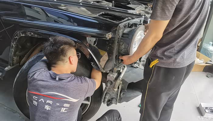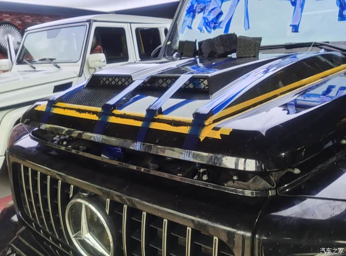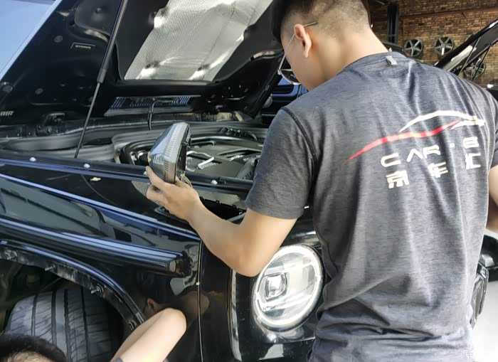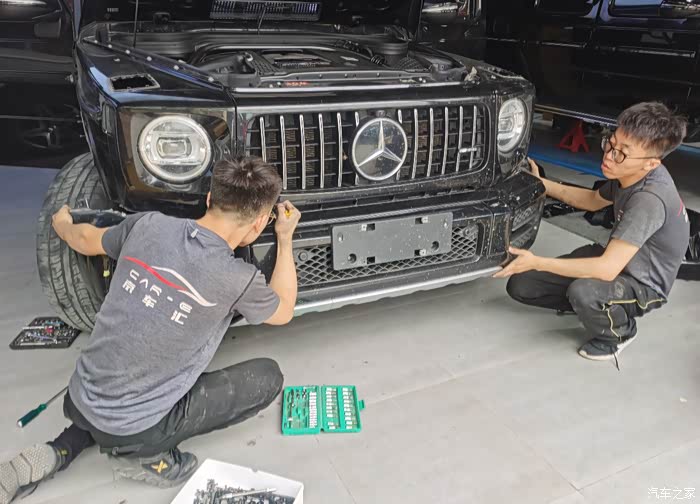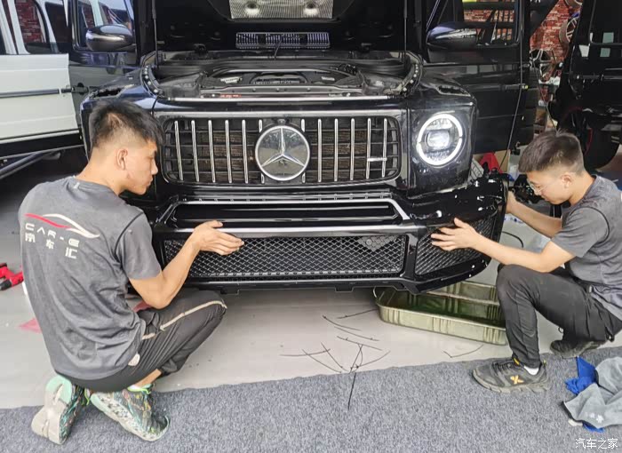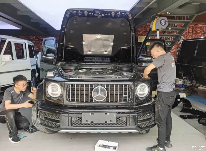 今天到店的这台G63车主本来是打算换一套海拉大灯和碳纤维内饰,后来看到了店内一台G350升级的巴博斯套件觉得很不错,直接一步到位改装巴博斯。