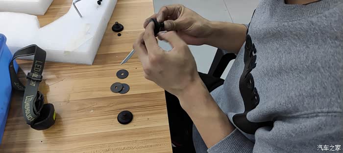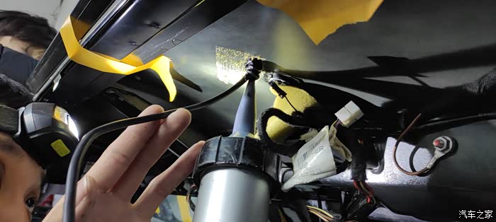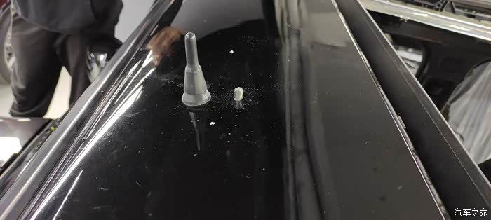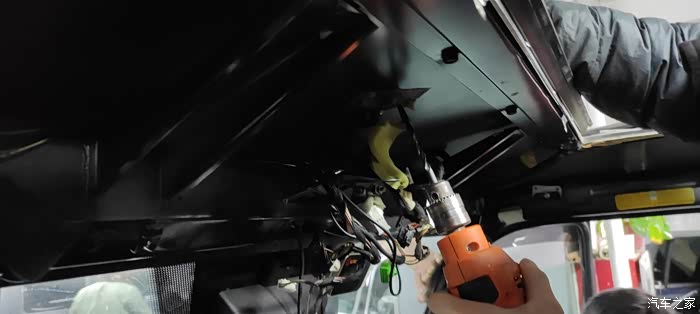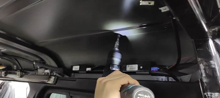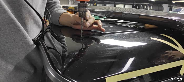 看看车里这边正在打孔,毕竟不是巴博斯没有预留孔位所以需要打两个很小的孔