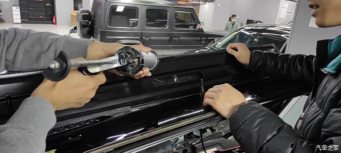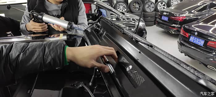 然后就该打玻璃胶了,因为车主不想打太多孔所以选择用胶固定