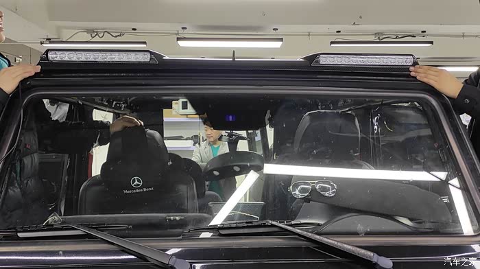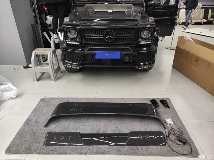今天的这台黑色G500除了整改全车内饰更换爱马仕橙颜色的包覆,还有个我爱的环节就是现在要讲的巴博斯碳纤维顶灯跟顶翼,可以看到全车包围已经更换成了巴博斯套件,全车也做了黑化处理,就差顶翼跟顶灯了,这就叫点睛之笔!最近还有好几个关于大“GG”的硬菜绝对能让你热血沸腾哈哈哈哈。好了话不多说直接进入主题吧