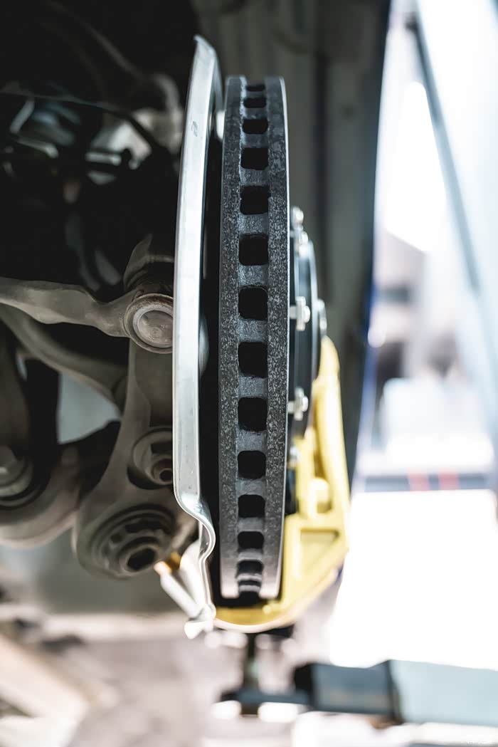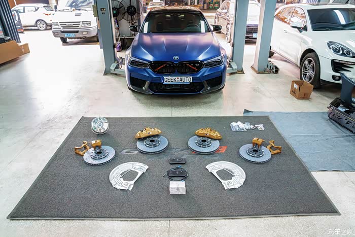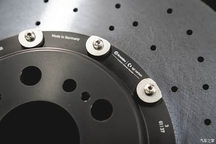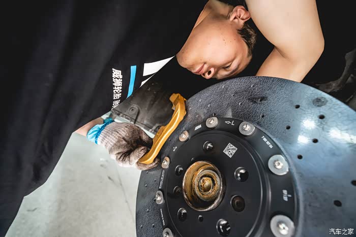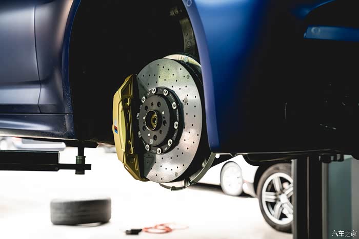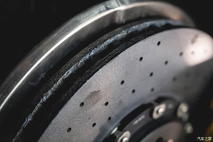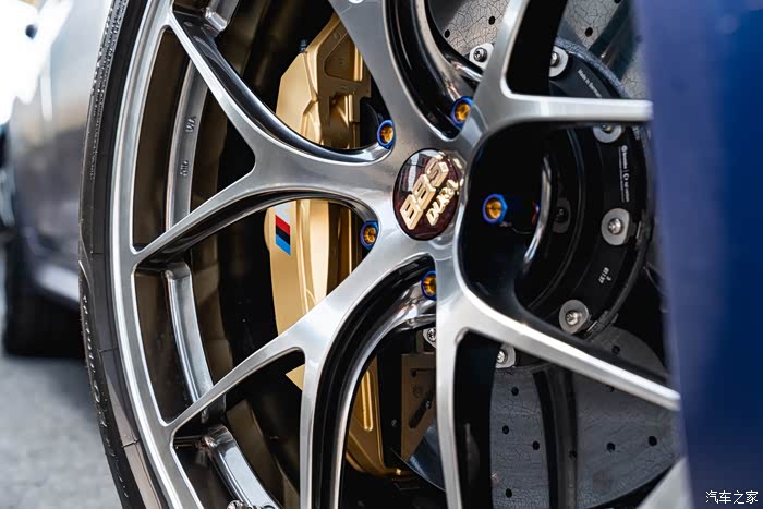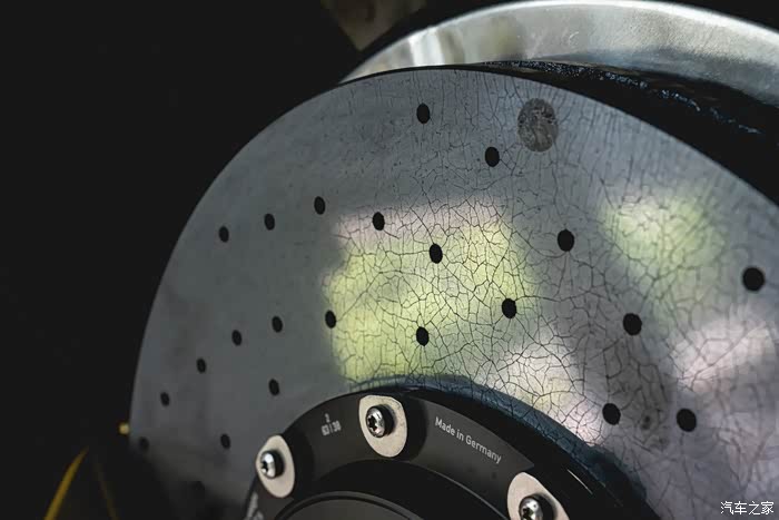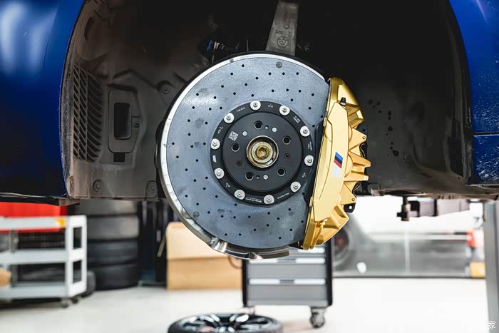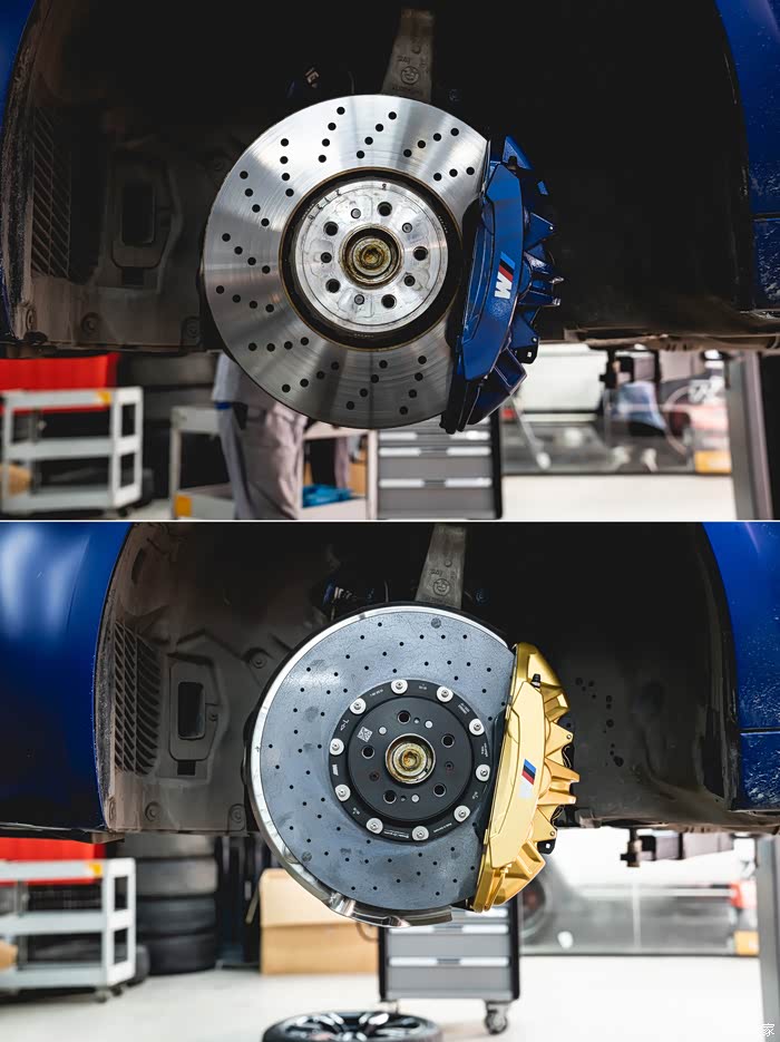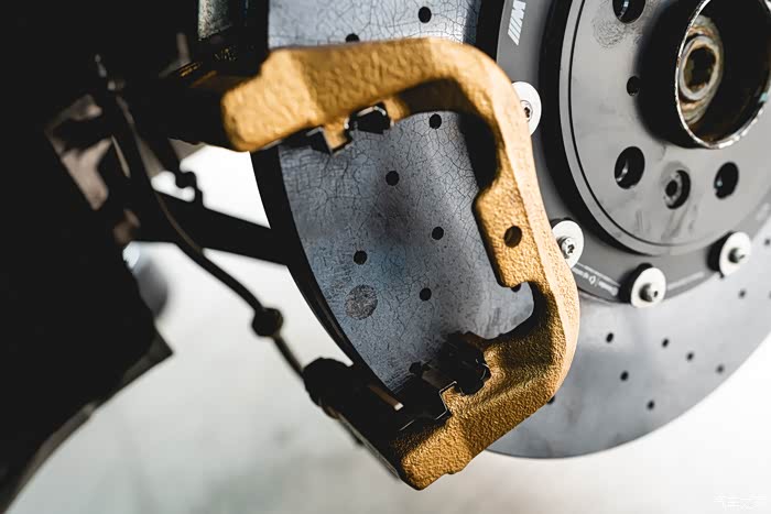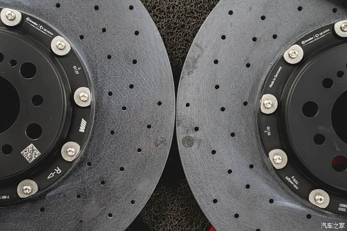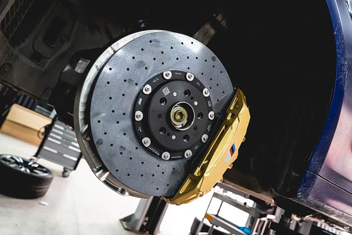 原厂碳陶刹车作为第二套改件被安排上身。并不说是原厂刹车不够用,在600匹马力之下,刹车冗余一定会被设计到足够,那么是什么促使一位平时开车温柔,几乎不下赛道的车主考虑更换碳陶刹车?两个字:好看。