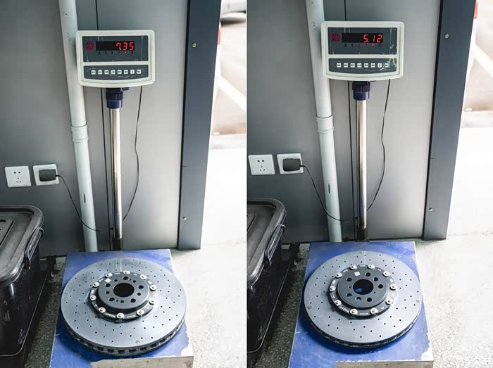 我们再回过头来看看碳陶盘的重量,以及它与原厂盘的对比