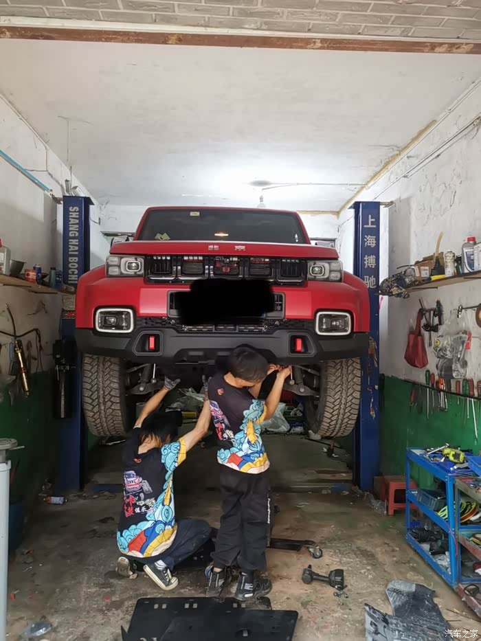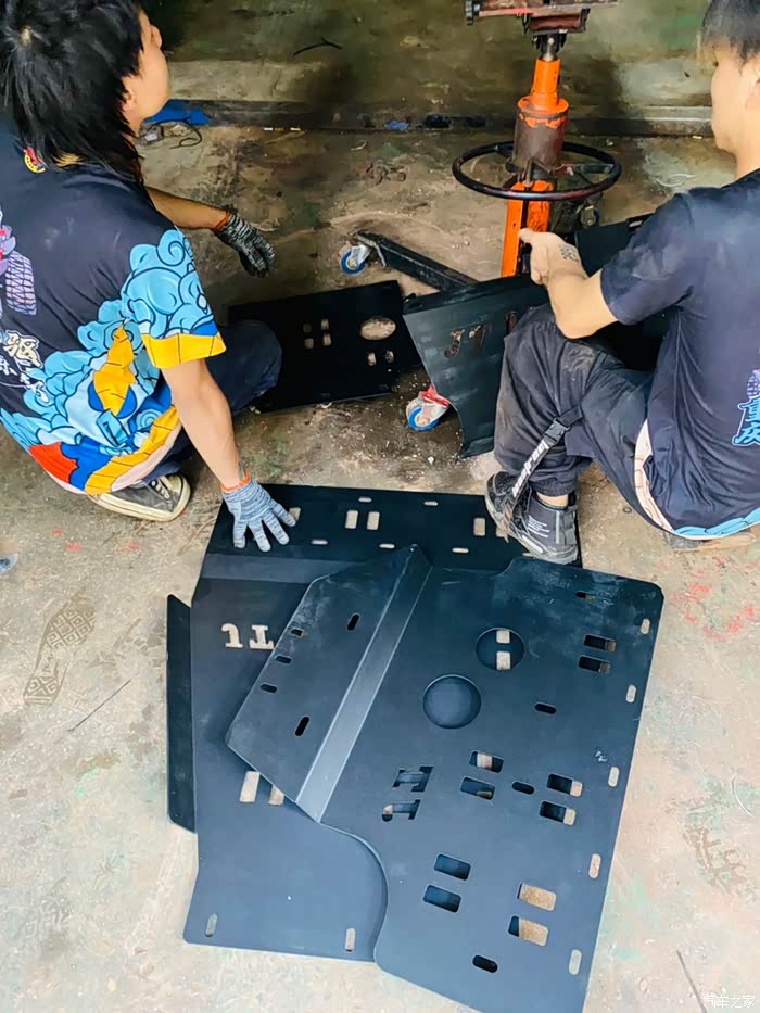 提车就预定的护板,因为等上牌等得太久了,中途老板把我定的都给别人装了,昨天拿到牌照装上,今天就赶紧跑过来把底盘护甲装起,慢慢先装点小件,一步一步慢慢整吧