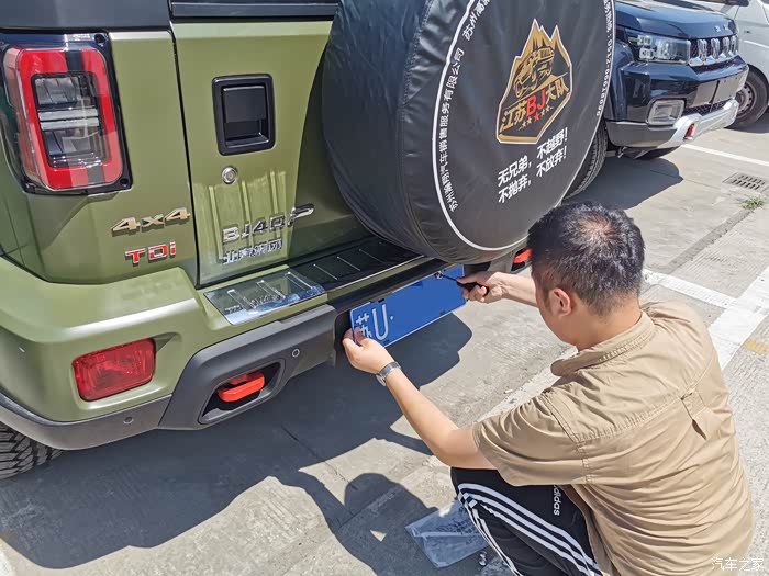 4S的师傅装完护板后顺便帮我贴挡雨眉,备胎罩前面上牌的时候发过了