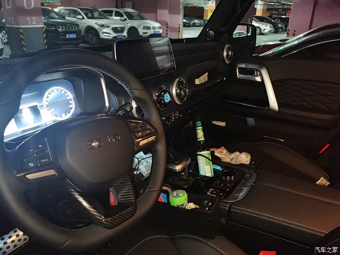 车内贴完装饰的情况,新车还是有点味道的,有收纳的地方都放了活性炭