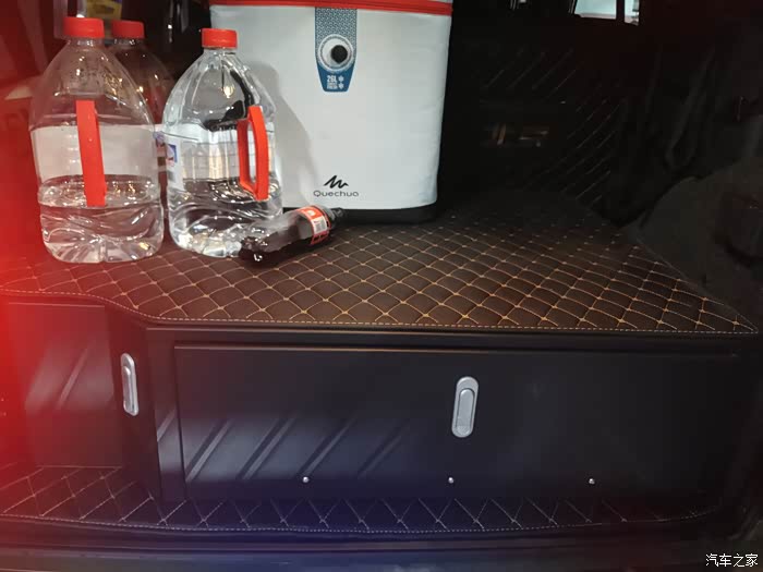 魔盒,还是挺能装的。侧面的小空间能放下两桶原装尿素(要掀开来上面小桌板)。抽屉也很大。问题就是老生常谈的抽屉锁有点问题加上不知道是故意还是公差问题,导致所有能打开的地方都有点难装回去,但有一个好处是卡得很紧。后备箱全包围的垫子里椅背的和底部的对魔盒没有什么影响,侧面的两块我装好又拆掉了,找人改了下保留上面的部分