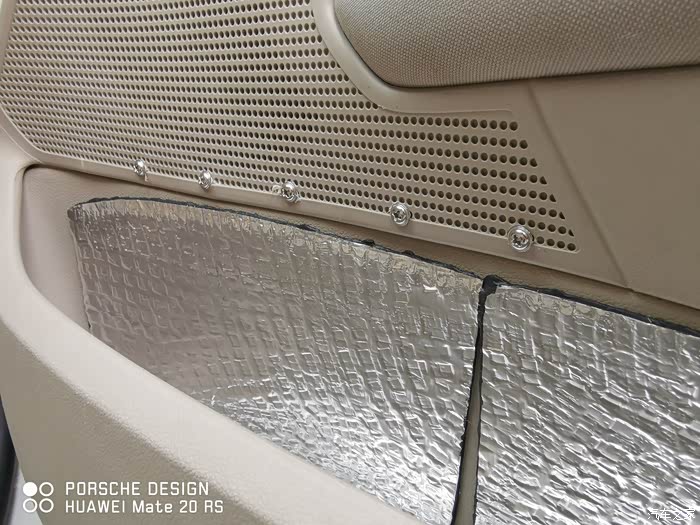 跑高速吹哨,这个问题是”敲“出来的,我用弹脑崩的办法,车身到处敲打,发现是车门前面的饰板松动,也是用背胶隔音毡片加固。