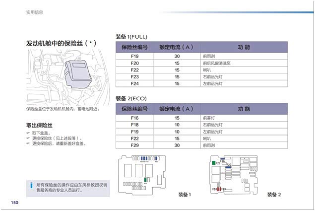 第一时间想到的是保险丝烧了,根据用户手册所示的雨刮洗涤壶电机的保险丝位置,打开机舱保险丝盒盖,意外发现用户手册的示意图和保险丝盒实物是不对应的,可能用户手册的信息是老408的吧,这点必须吐槽。根据电机保险丝是15A的,就随机拔了几个15A的保险丝进行检查
