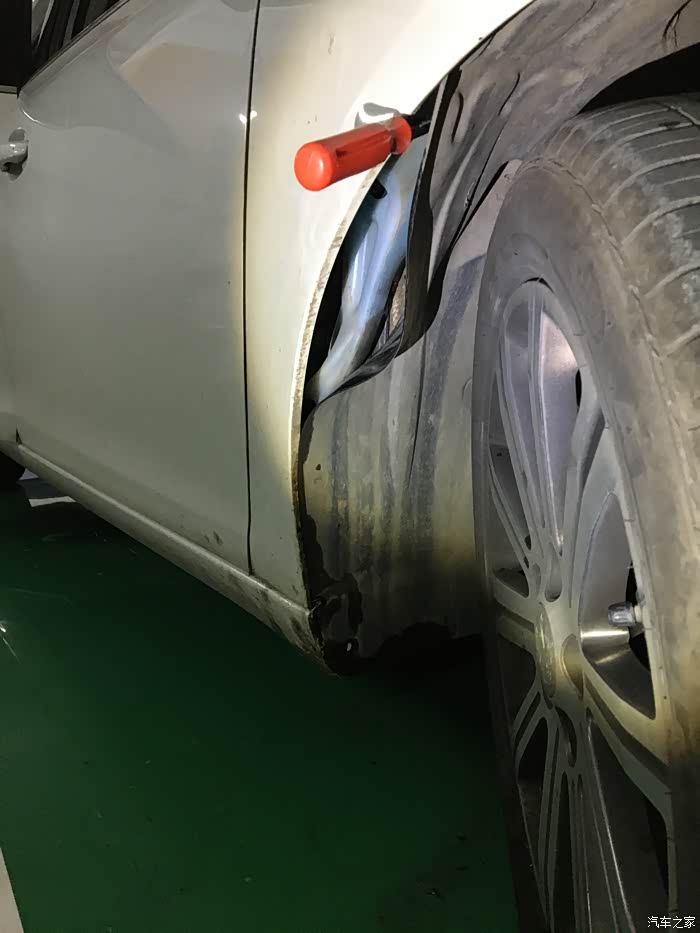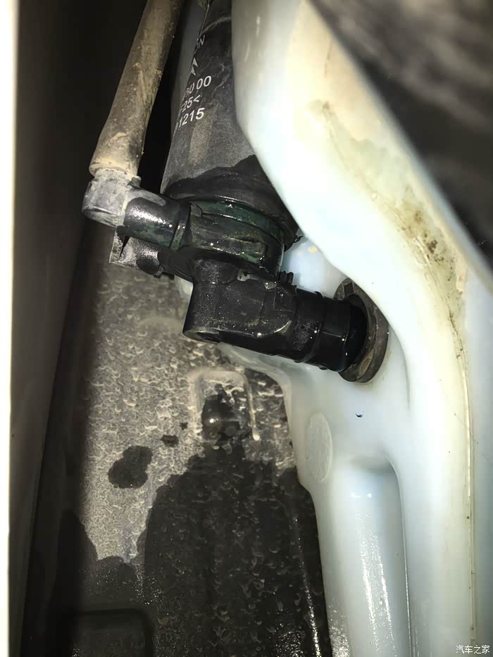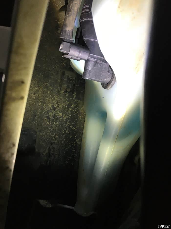 通过查找从相关途径获得的整车设计数模,清楚地了解了洗涤壶的具体位置了,试着前轮往右打死,拆下轮罩后下方的螺栓,用力扒开车轮靠后的轮罩,能够勉强看到洗涤壶及其喷水电机了