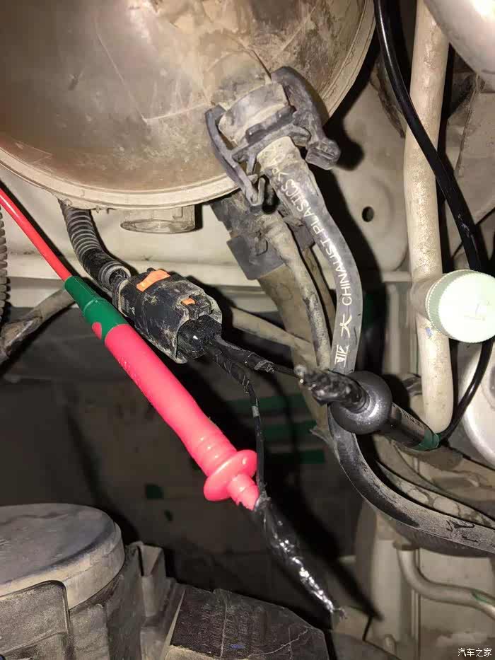 这是在最靠近喷水电机的线束接头断开后用万用表测量工作电压的方法