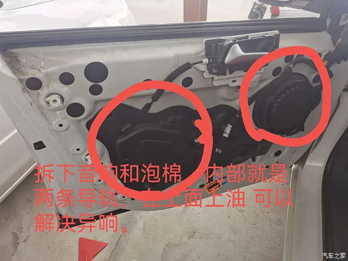 网购了玻璃清洁剂润滑剂表板蜡等多种喷剂,下降玻璃后在内外玻璃压条,窗内侧玻璃橡胶条多处进行过润滑清理工作,问题一直没有得到解决。特此拆卸门板准备追根究底看看是什么原因到导致的吱嘎摩擦异响。副驾驶已经经过拆卸处理,主驾驶未处理。(随后在其他帖子上传视频)另附主驾驶拆卸的过程图片供大家参考。