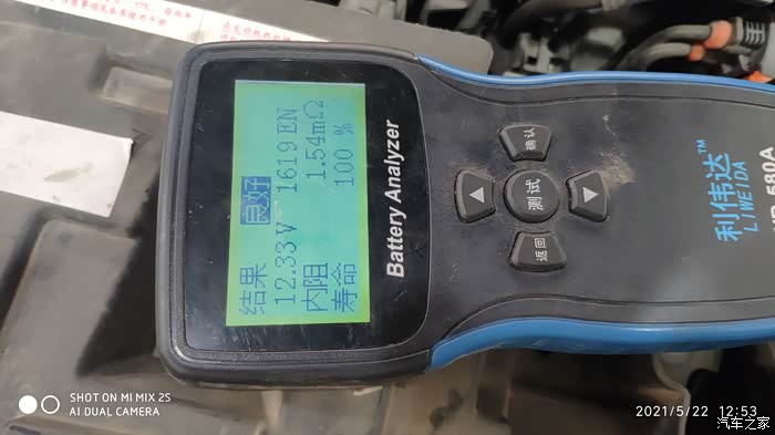 顺便测试一下大水塘再车上两年的工作状态,这回采用“EN”来测试,不用“CCA”, 因为车载电脑里面的检测方式也是“EN”,数值没有CCA来的那么大,实测1600以上,超过原厂要求的两倍