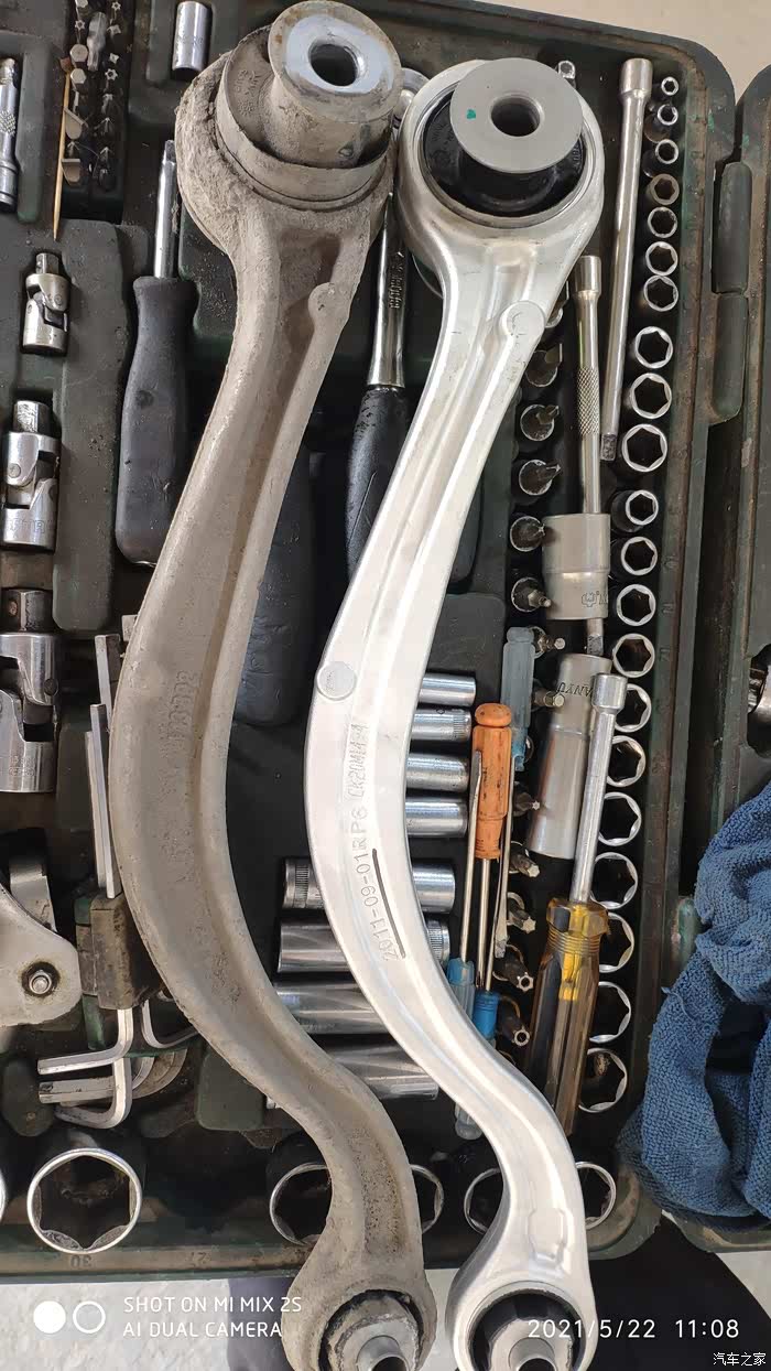 一转眼就换上去了,这个其实并不难。但是别忘记用扭力扳手按规定拧紧,这个是悬挂结构件,绝对马虎不得